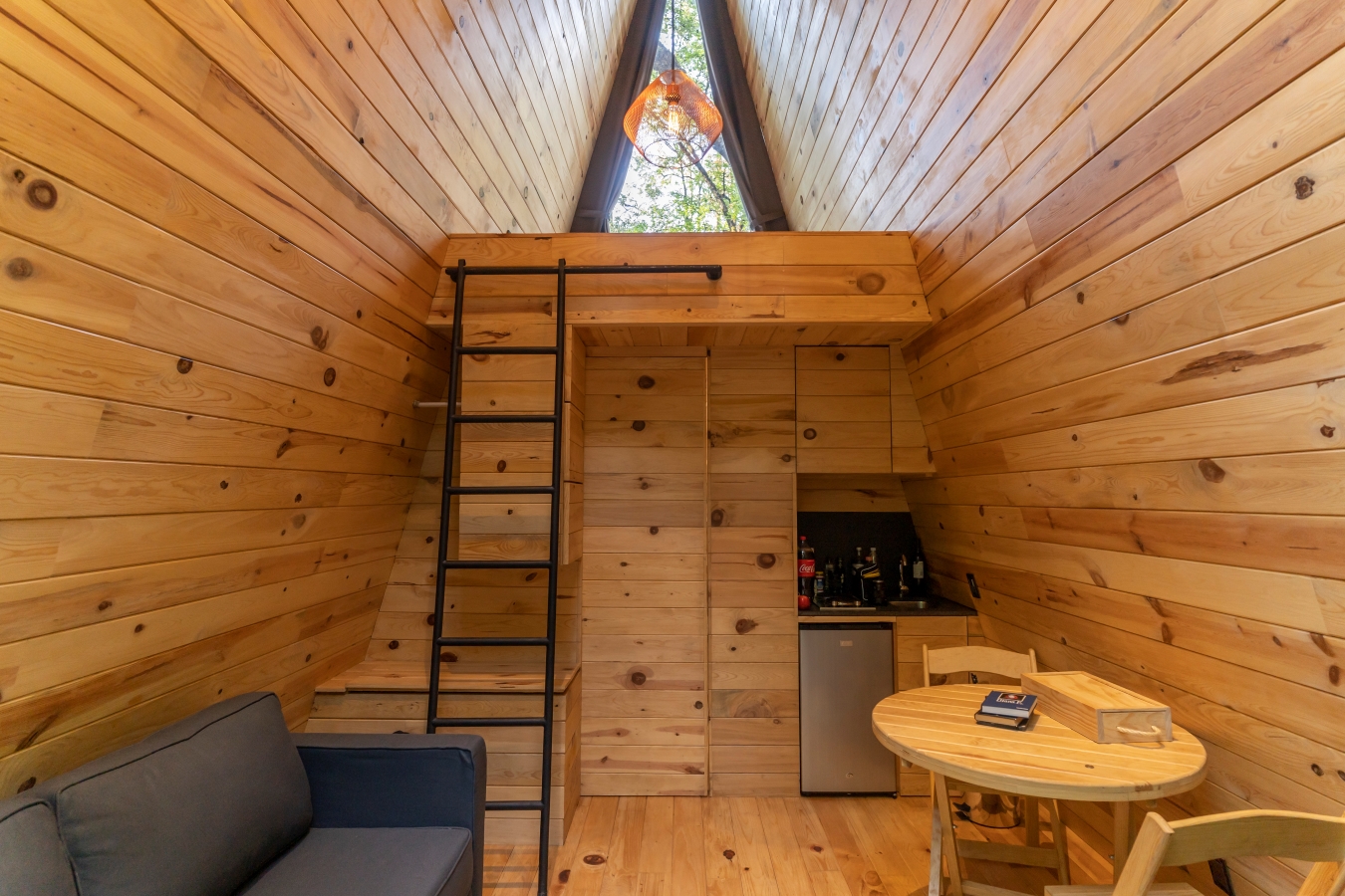 Esta cabaña es para ti si no te gustan las alturas y prefieres dormir en un primer piso. Esta cabaña cuenta con una cama tamaño Queen en un primer piso, con sábanas y almohadas frescas.
