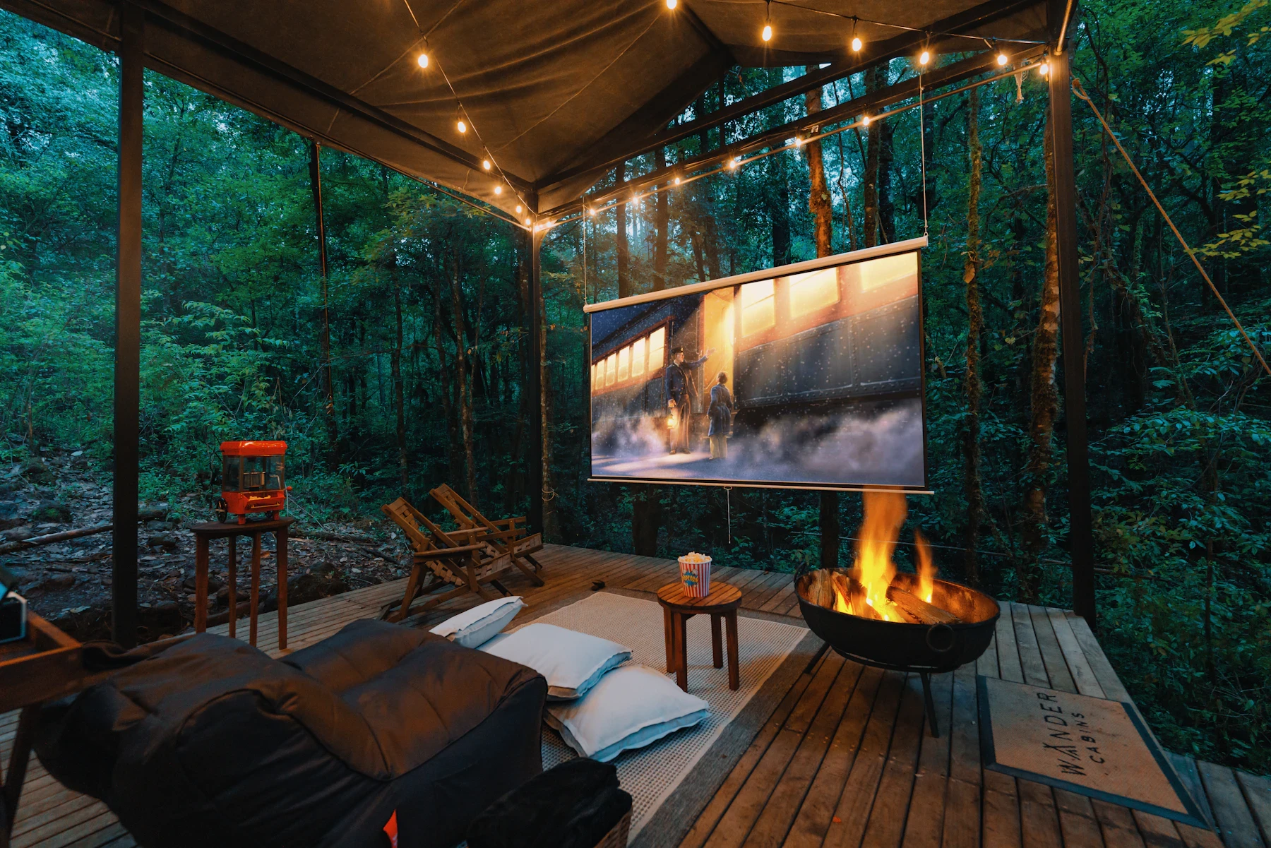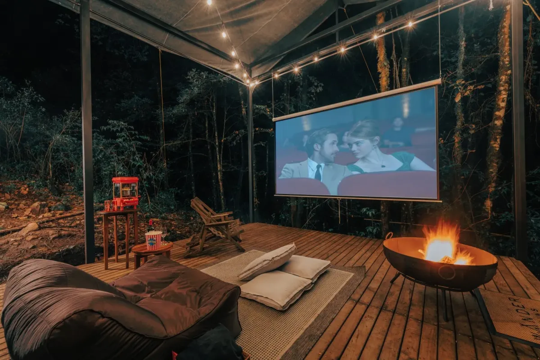 Disfruta de una película de tu elección bajo las estrellas, junto con palomitas, tu bebida favorita, cobijas, y acompañado de una fogata. Duración: 2 horas para Máximo 4 personas.